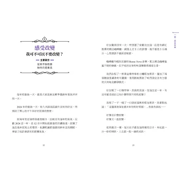 ★洪培芸│臨床心理師、作家:「感受改變、接受應變與享受蛻變,正是『臣服』與『創造』的最高體現。曾經我也抗拒改變,卻在擁抱變化後,迎來持續蛻變的自己,才有和郝哥、好機緣的更多遇見。透過本書,邀請你加入享受蛻變的行列。」